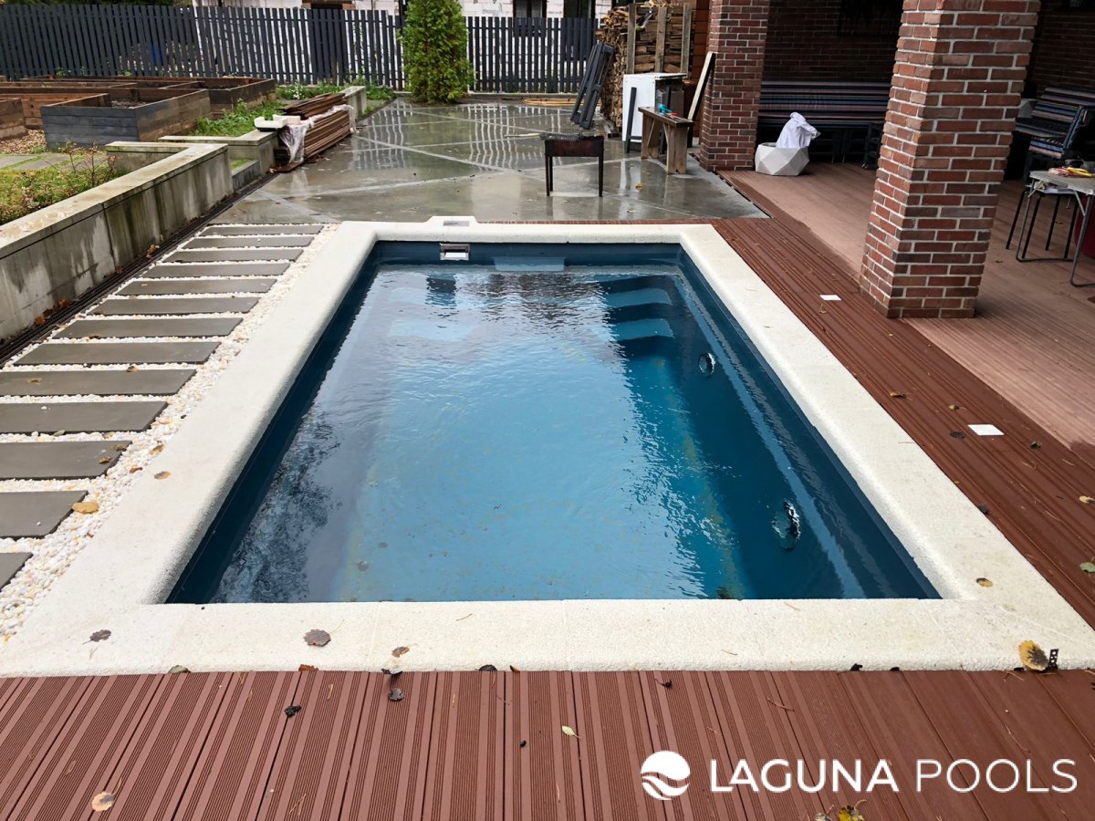 Прямоугольный композитный бассейн на заднем дворе